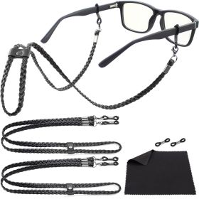 Eye Glass String Strap Holder Premium ECO Leather 2 Cords Black 30 inch Length
